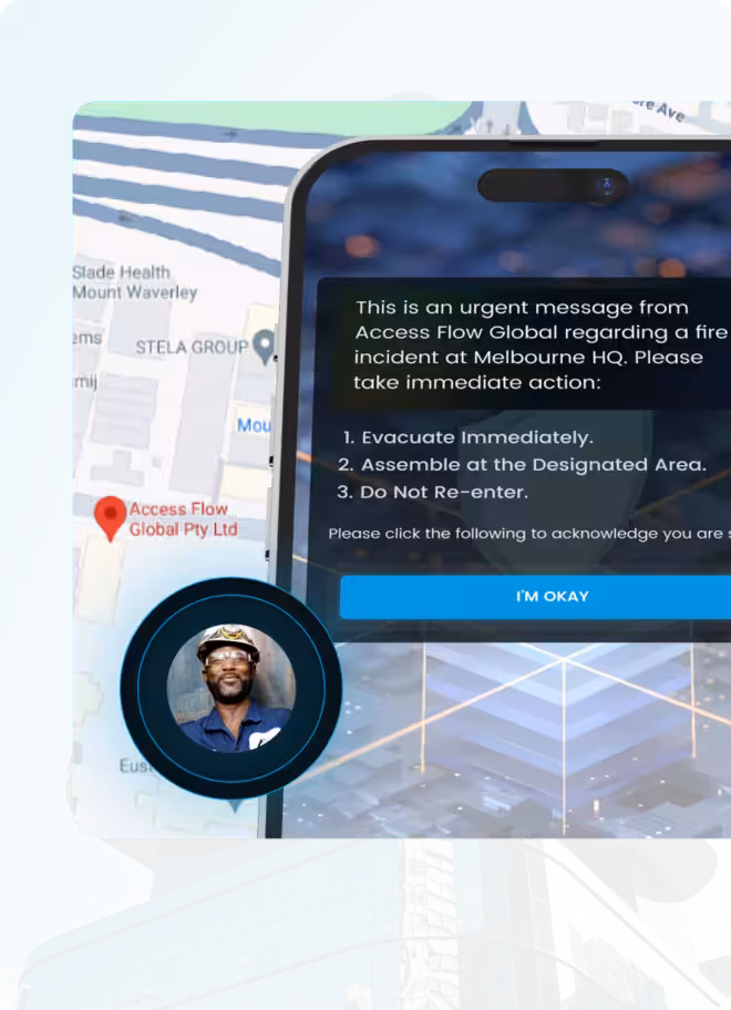 Monitor contractor movements within designated areas. Facilitate emergency messaging and real-time safety confirmations.